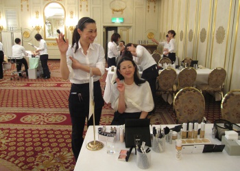 2,100円以上をチャリティBOXに入れていただき、フェイシャルエステ&メイクの施術をします。